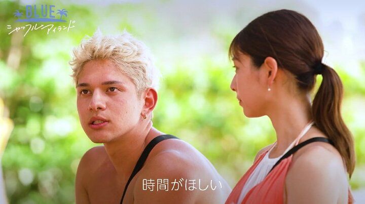 ABEMAの恋愛番組『シャッフルアイランド Season4』#5が8月18日(金)夜10時より放送。美人過ぎるカフェ店員が金髪イケメンに甘えまくり、「腕くんでもいい?」と水着姿でおねだりした。